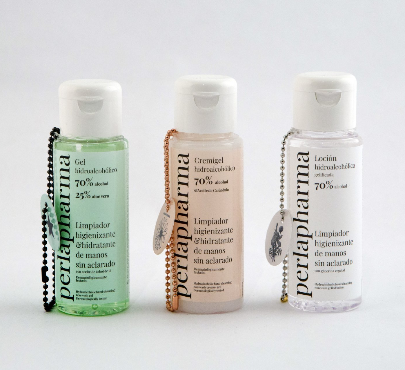Y es por tanto ahora, y no antes, desaprovechando por respeto ético el boom de venta inicial, cuando consideramos que ya se conocen este tipo de productos y que se ha generado una cultura de uso, cuando PERLAPHARMA realiza su próximo lanzamiento de Hidroalcohólicos: en formato 50ml colgadores jewell y 100ml pocket, monísimos, con fórmulas enriquecidas y de calidad, que huelen súper bien (hemos recibido la enhorabuena del Laboratorio clínico que los ha testado dermatológicamente) pero por favor tened siempre presente lo que comentaba en el párrafo anterior: NO SON UN JUGUETE, supervisad como adultos su uso y sólo dejadlos en niños capaces de comprender, y lo siento si me repito, que con estos productos no se juega ni se chupan ni se beben ni el por qué no se comparten.